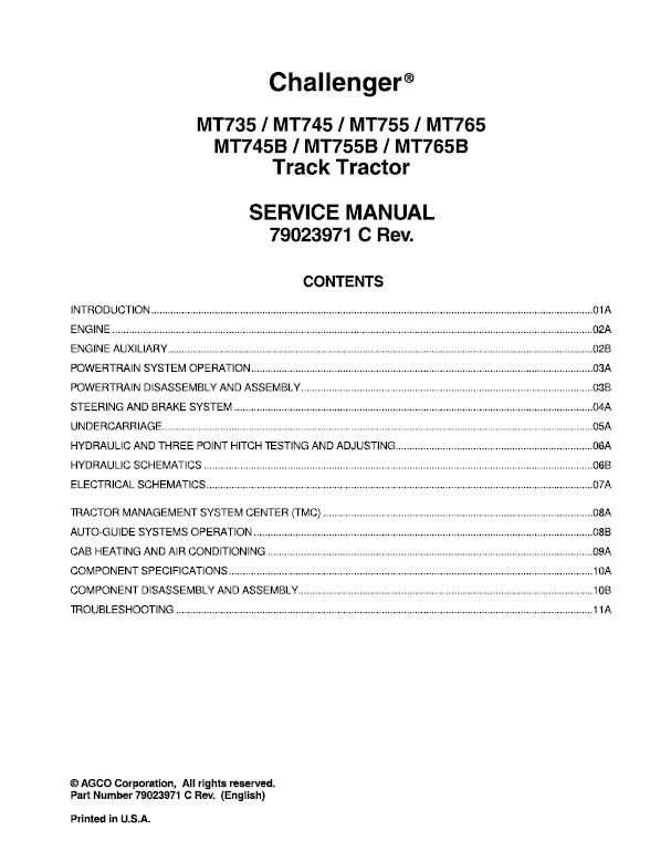 Challenger MT745B, MT755B, MT765B Tractor Workshop Manual : 2771 Pages