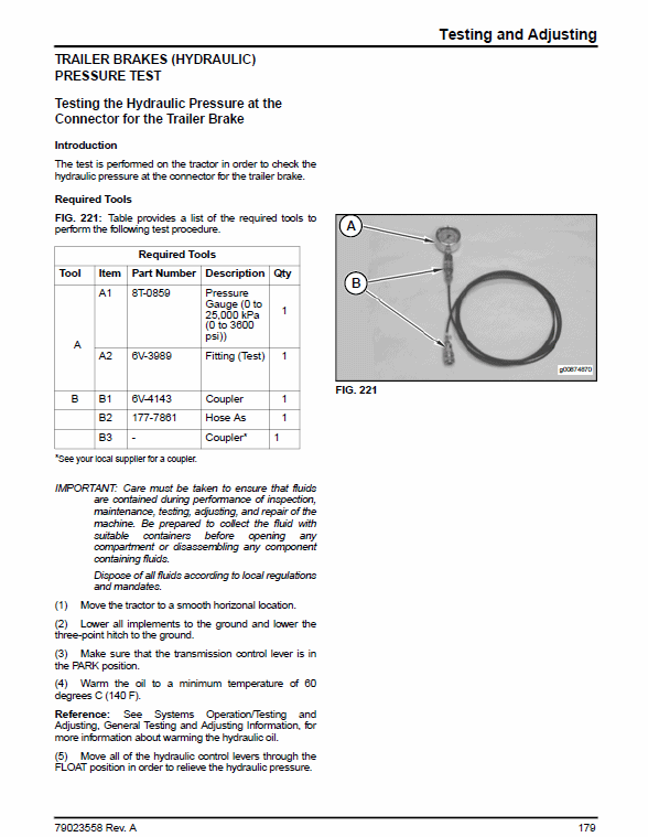 HYDRAULIC AND THREE POINT HITCH lESTING AND ADJUSTING …………………………………………………………….06A