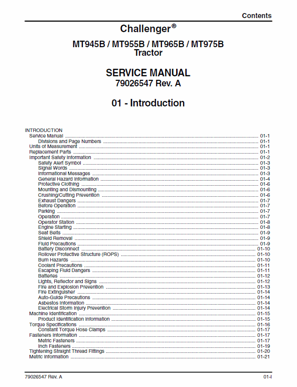 Manual for: AGCO Challenger MT945B, MT955B, MT975B