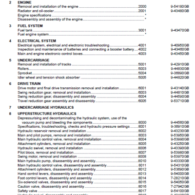 Regular maintenance is essential to keep the excavator in peak condition. The following sections outline key maintenance tasks: