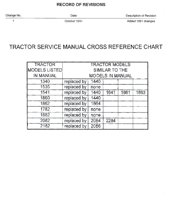 | Tractor Model Listed in Manual | Tractors Models Similar to the Models in the Manual | ||||