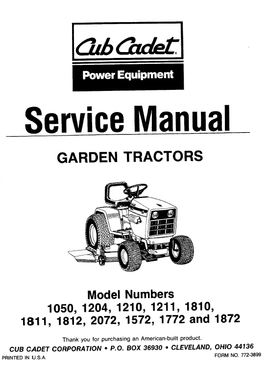The Cub Cadet 1810, 1811 and 1812 tractors manual instruction are for use by trained technicians who are experienced in the service and repair of outdoor power equipment of the kind described in this publication 772-3899..
