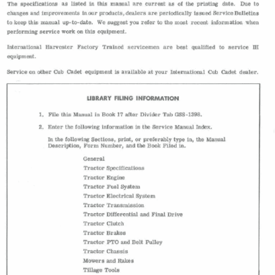 Publication: Cub Cadet Service Manuals