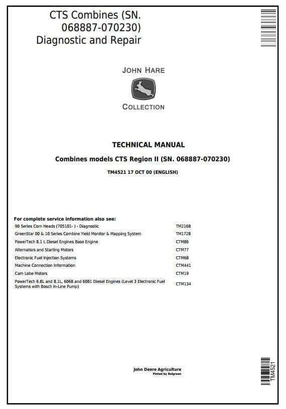 TM4521 – John Deere CTS Combines (SN. 068887-070230) Diagnostic and Tests Service Manual