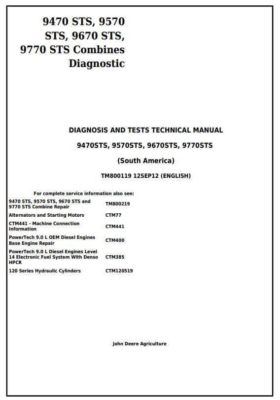 TM803919 – John Deere S540, S550, S660, S670, S680, S690 Combine Diagnostic and Tests Service Manual
