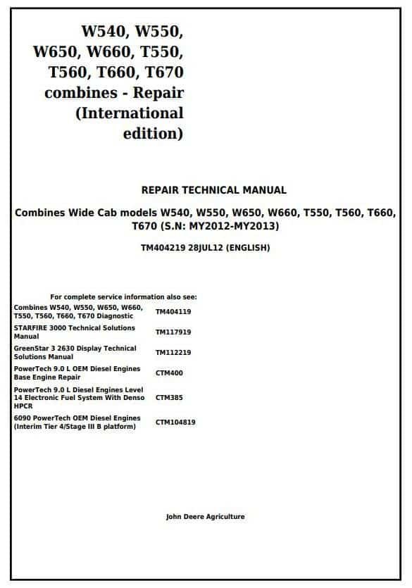 TM406119 – John Deere W540, W550, W650, W660, T550, T560, T660, T670 Combines (MY14) Diagnostic Manual