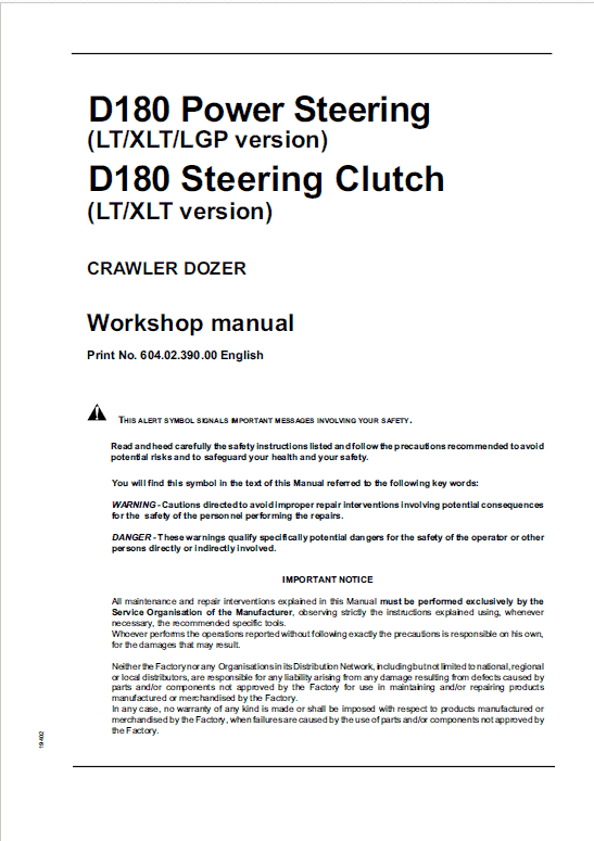 Repair Manual for: Bulldozer D180 LT, D180 XLT, D180 LGP