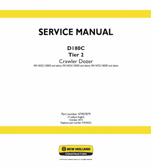 The Workshop Manual is wrote by New Holland repair specialist. It provides important information on carrying out repair work expertly. Please go carefully through the Workshop Manual of the Dozer before starting any repair work. Use the Workshop Manual as a reference book and source of information even if you are familiar with Dozer technology. Using the Workshop Manual, the experience construction machine mechanic can carry out any necessary repairs expertly.