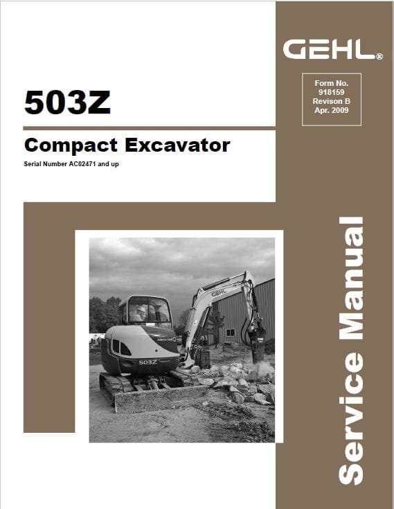 - Gehl GE 503Z, GE 603 Mini Excavator Repair Service Manual