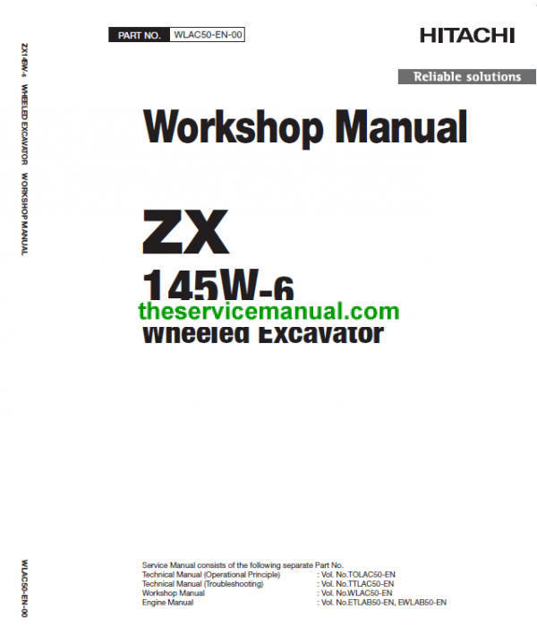 - Hitachi ZX145W-6 Wheel Excavator Workshop Manual (Vol. No.WLAC50-EN)