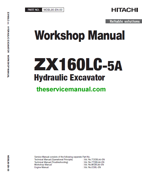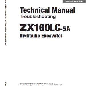Hitachi ZX160LC-5A and ZX160LC-5B service manual consists of the Operating, Troubleshooting and the Workshop Manual.