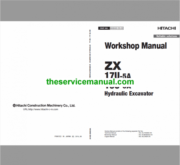 The Hitachi ZX17U-5A and ZX19U-5A manual consists of the Service Manual and the Workshop Manual.