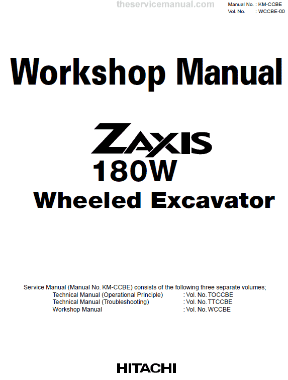 Hitachi ZX180W service manual consists of the Operating, Troubleshooting and the Workshop Manual.