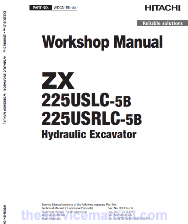 The manual is applicable for the Hitachi ZX225USLC-5B and ZX225USRLC-5B Excavator Model