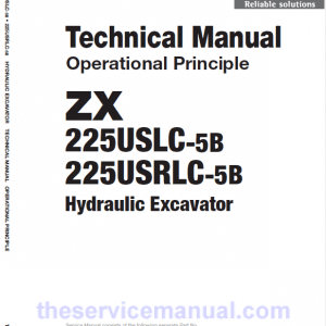 Hitachi ZAXIS ZX225USLC-5B and ZX225USRLC-5B service manual consists of the Operating, Troubleshooting and the Workshop Manual.