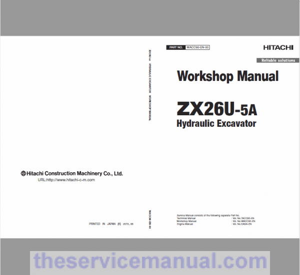 The Hitachi ZX26U-5A manual consists of the Service Manual and the Workshop Manual.
