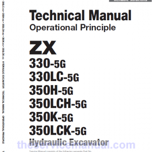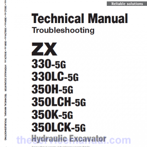 Hitachi ZAXIS ZX330-5G, ZX330LC-5G, ZX350H-5G, ZX350LCH-5G, ZX350K-5G and ZX350LCK-5G service manual consists of the Operating, Troubleshooting and the Workshop Manual.