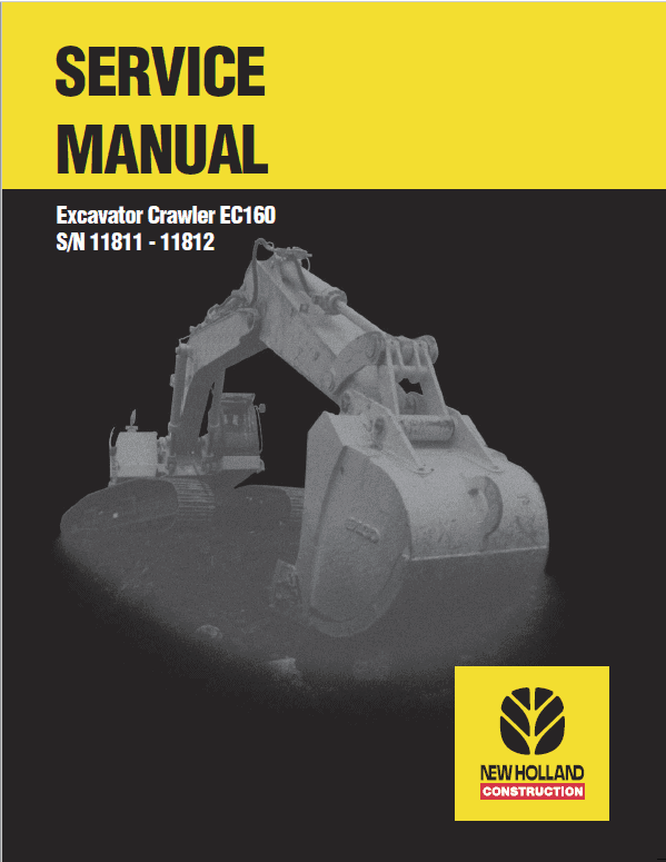 This manual covers the repair and adjustment procedures for the New Holland Model EC160 Excavator. All repair and maintenance work listed in this manual must be carried out only by qualified personnel, strictly complying with the instructions given, and using, whenever possible, the special tools.