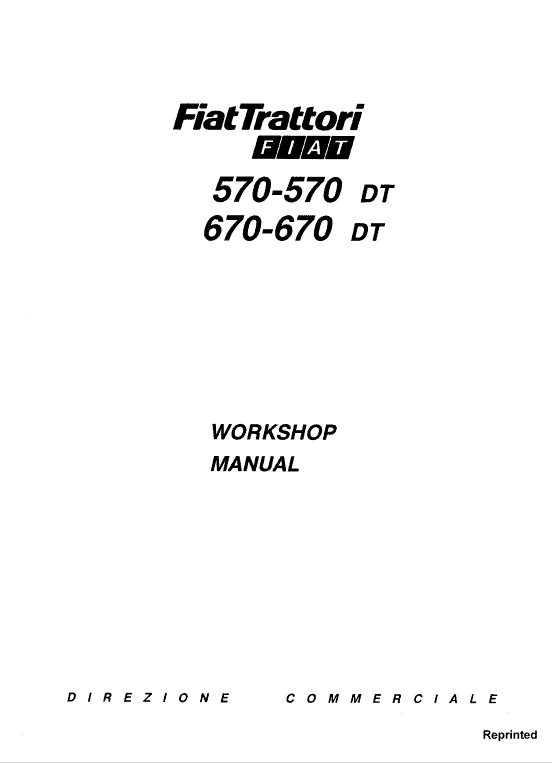 The Fiat Service Manual provides you with all the technical specification and information needed for you to properly service the Fiat Tractor 570, 570DT, 670, 670DT. By using this repair service manual in addition to your operators manual supplied, you should be able to correctly service and maintain your tractor.