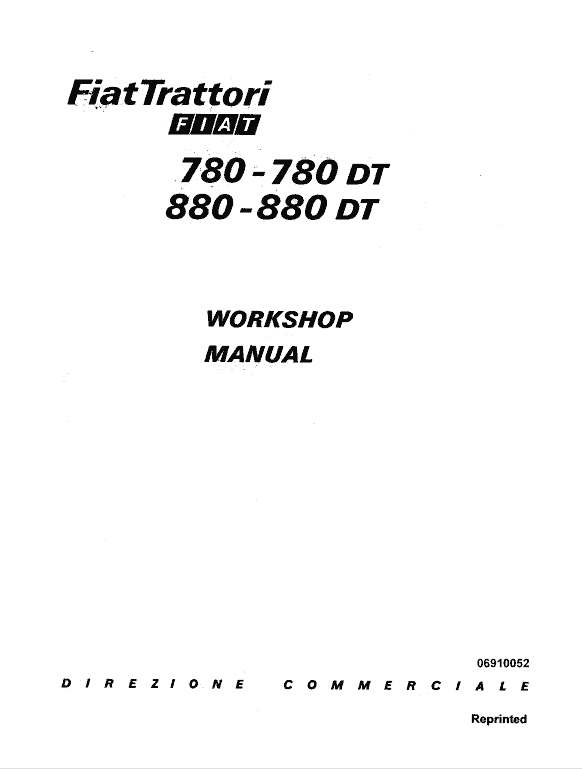 The Fiat Service Manual provides you with all the technical specification and information needed for you to properly service the Fiat Tractor 780, 780DT, 880, 880DT . By using this repair service manual in addition to your operators manual supplied, you should be able to correctly service and maintain your tractor.