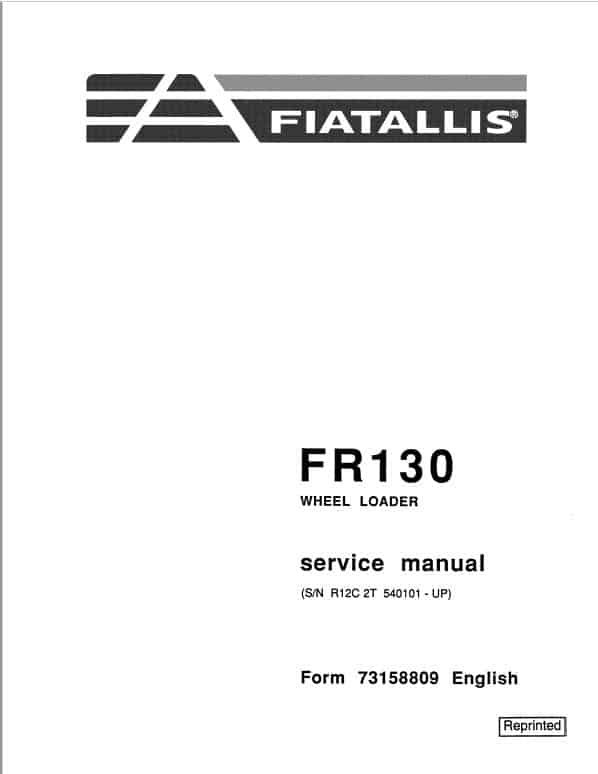 - Fiatallis FR130 Wheel Loader Repair Service Manual – 624 Pages