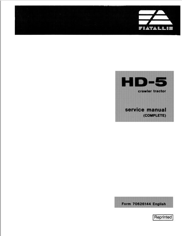 Fiatallis HD-5 Crawler Tractor Repair Service Manual