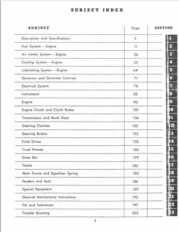 Table of Content of the Fiatallis HD-5 Crawler Tractor Manual:
