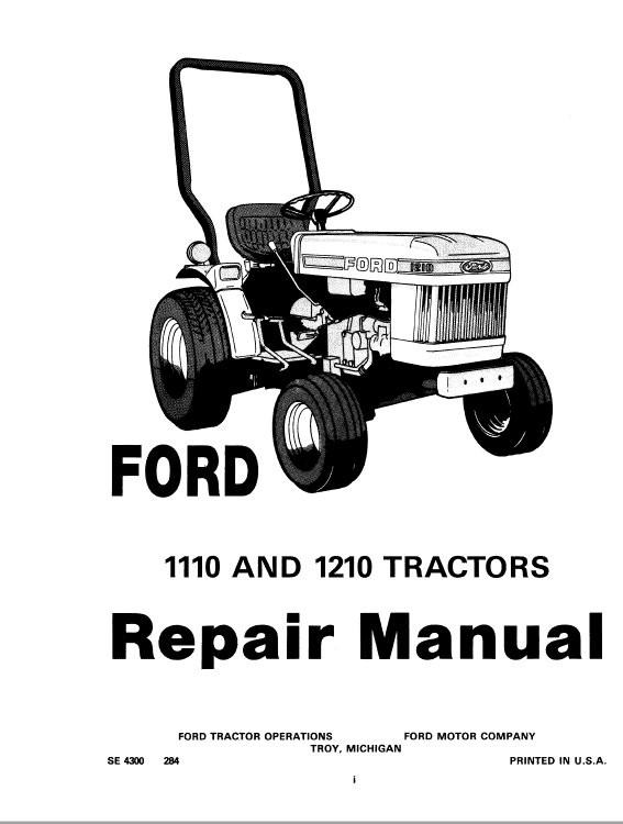 This repair manual provides information for the proper servicing and overhaul of Ford 1110 and 1210 Tractor Models and is an essential publication for all service personnel carrying out repairs and maintenance procedures.