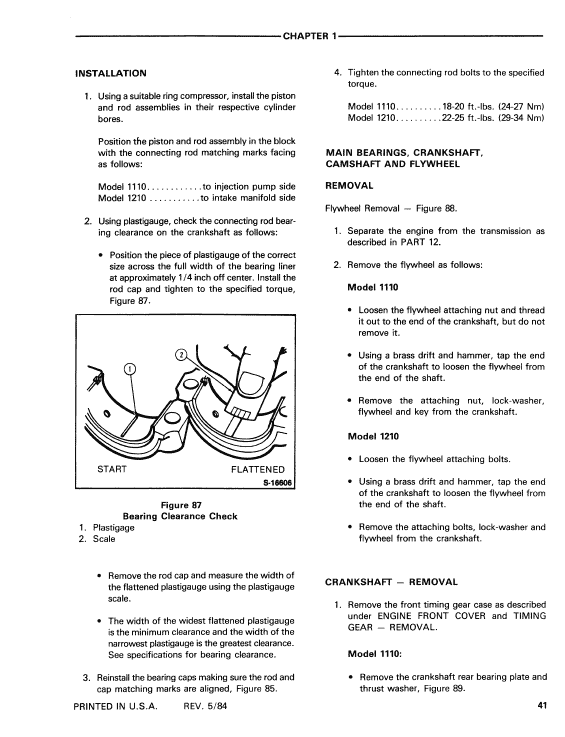Table of Content of the 1110 and 1210 Tractor Manual: