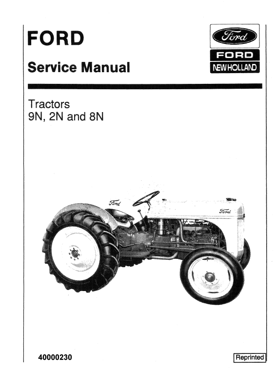 The Ford Service Manual provides you with all the technical specification and information needed for you to properly service the Ford Tractor 2N, 8N, 9N. By using this repair service manual in addition to your operators manual supplied, you should be able to correctly service and maintain your tractor.