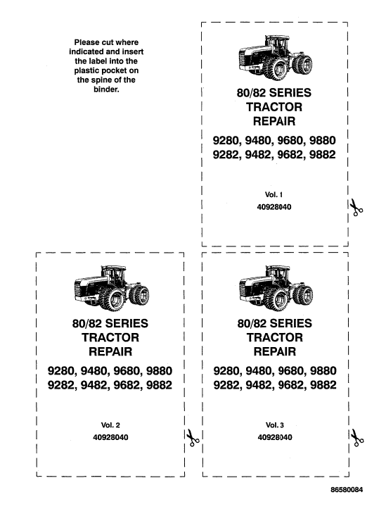 Equipment Type: Tractor 9280, 9480, 9680 and 9880