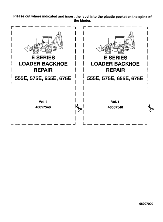 Table of Content of the 555E, 575E, 655E, 675E Backhoe Loader Tractors Manual:
