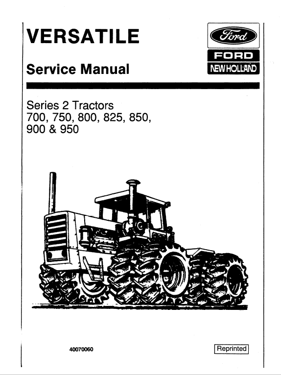 Ford Versatile 700, 750, 800, 825, 850, 900, 950 Tractor Service Manual