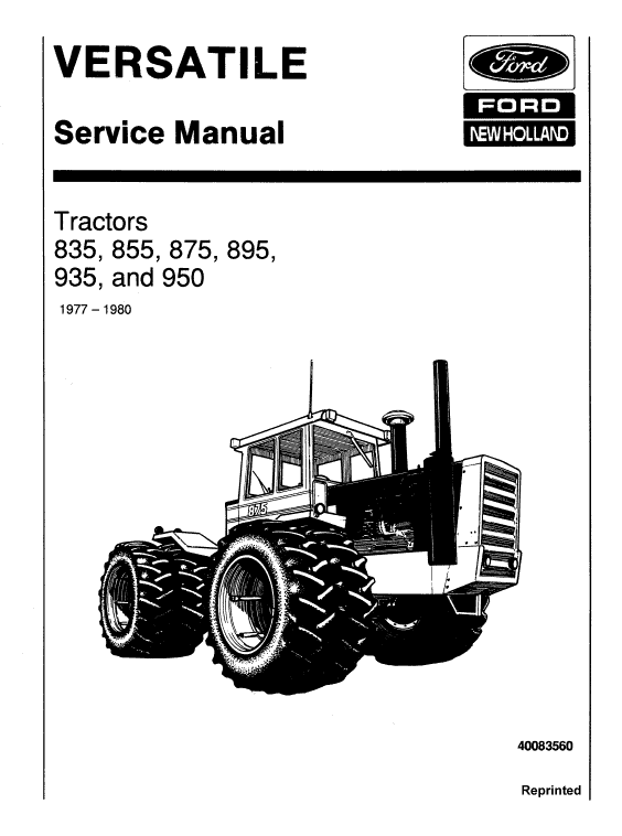 Ford Versatile 835, 855, 875, 895, 935, 950 Tractor Service Manual