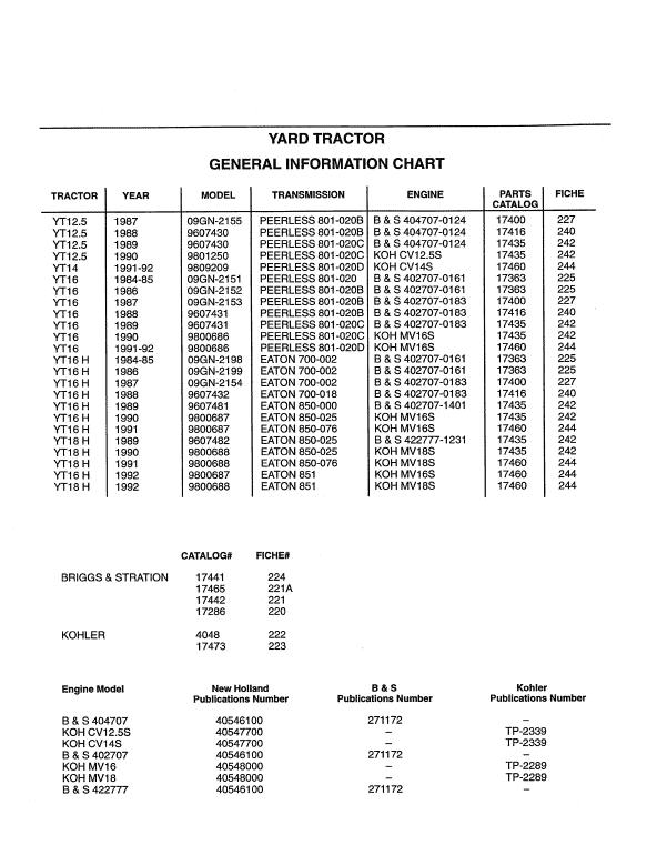 Ford YT12.5, YT14, YT16 and YT16H Yard Tractor Service Manual