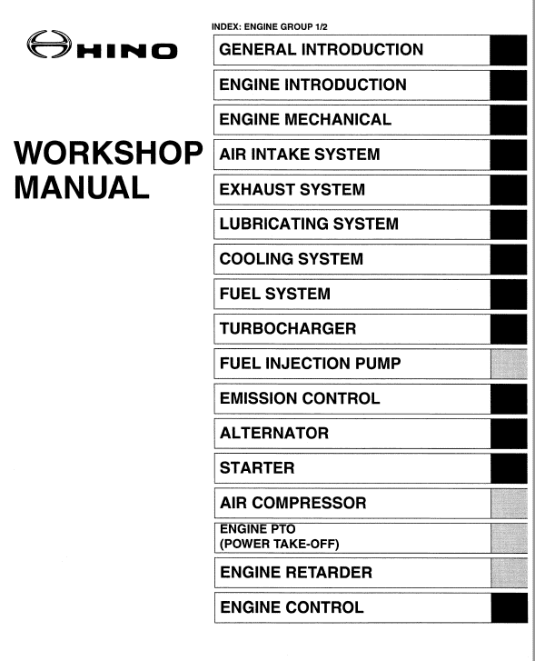 Table of Content For Hino 2006 Engine Truck Manual: