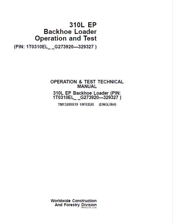 John Deere 310L EP Backhoe Loader Technical Manual (S.N after G273920 – G329327 )