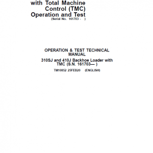 The John Deere 310SJ, 410J (TMC) Service Manual (S.N after 161703) Backhoe Loader Technical manuals are divided in two parts: repair and operation and tests. Repair sections tell how to repair the components. Operation and tests sections help you identify the majority of routine failures quickly.