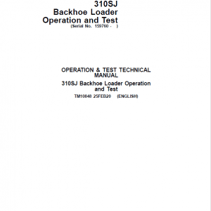 The John Deere 315SJ (S.N after 159760 – ) Backhoe Loader Technical manuals are divided in two parts: repair and operation and tests. Repair sections tell how to repair the components. Operation and tests sections help you identify the majority of routine failures quickly.
