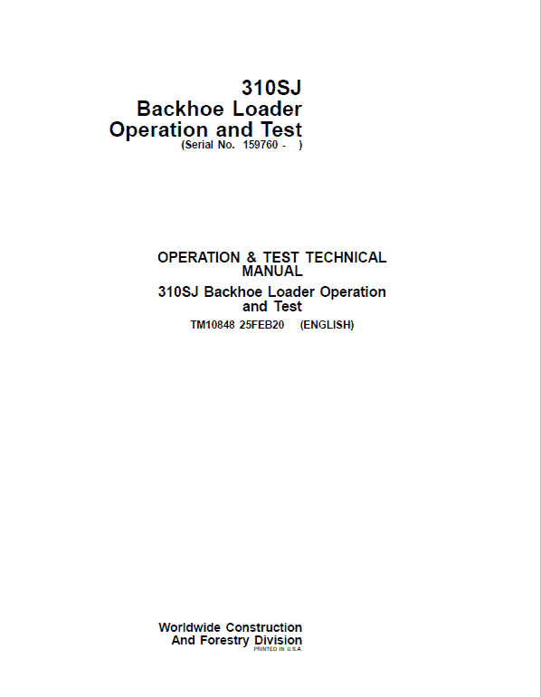 John Deere 310SJ Backhoe Loader Repair Technical Manual (S.N after 159760 – )