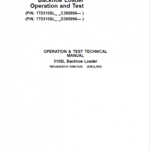 The John Deere 310SL (Serial No. after C390996 & D390996 – ) Backhoe Loader Technical manuals are divided in two parts: repair and operation and tests. Repair sections tell how to repair the components. Operation and tests sections help you identify the majority of routine failures quickly.