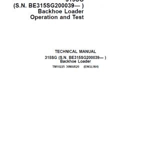 The John Deere 315SG (S.N. BE315SG200039— ) Backhoe Loader Technical manuals are divided in two parts: repair and operation and tests. Repair sections tell how to repair the components. Operation and tests sections help you identify the majority of routine failures quickly.
