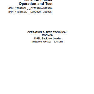 The John Deere 315SL (Serial No. between C273920 – C390995 and D273920 – D390995) Backhoe Loader Technical manuals are divided in two parts: repair and operation and tests. Repair sections tell how to repair the components. Operation and tests sections help you identify the majority of routine failures quickly.
