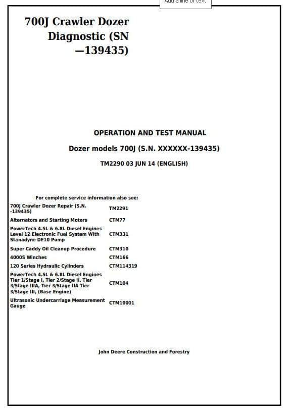 Operating and maintaining heavy machinery like the 700J isn’t just about turning the ignition key—it’s about understanding every nuance of the equipment. The John Deere 700J Operation and Test Service Manual equips you with: