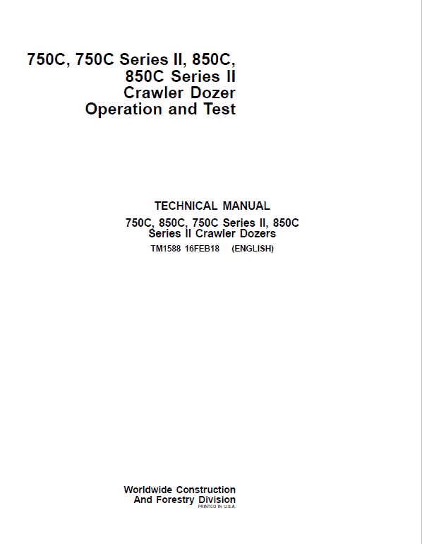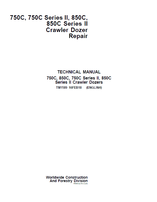 John Deere 750C, 750C Series II, 850C, 850C Series II Crawler Dozer Technical Manual