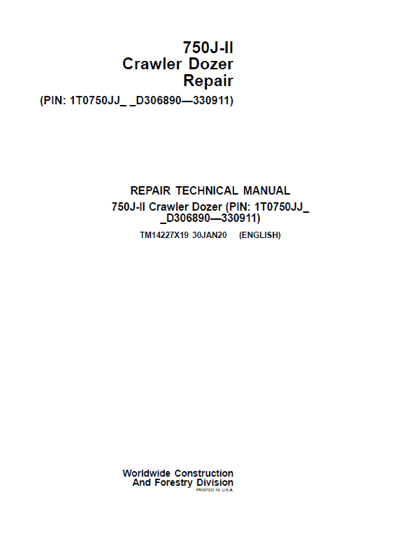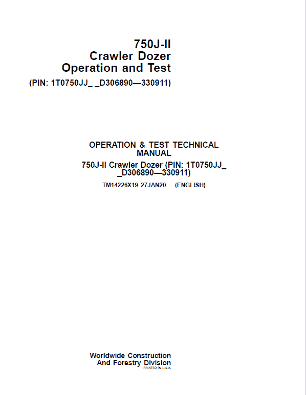John Deere 750J-II Crawler Dozer Technical Manual (SN. from D306890-D330911)