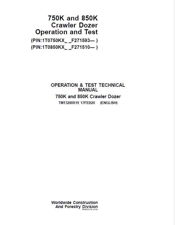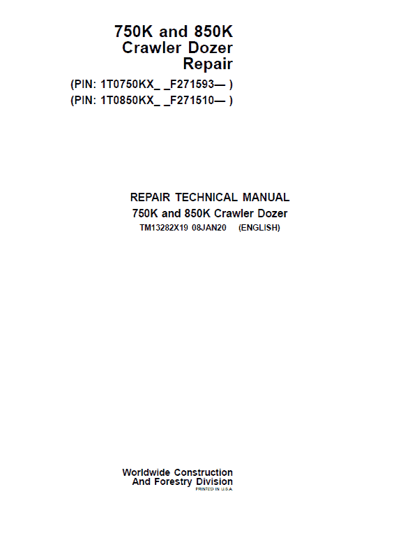 John Deere 750K, 850K Crawler Dozer Technical Manual (SN. from F271510)