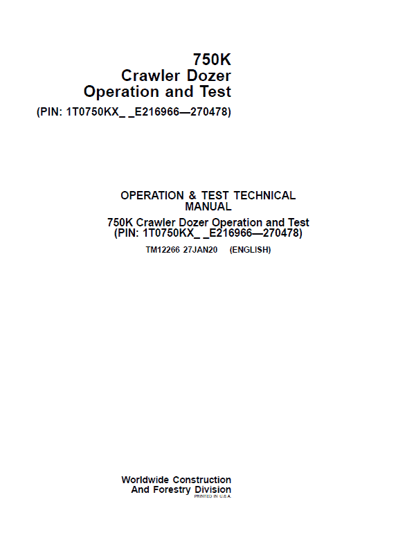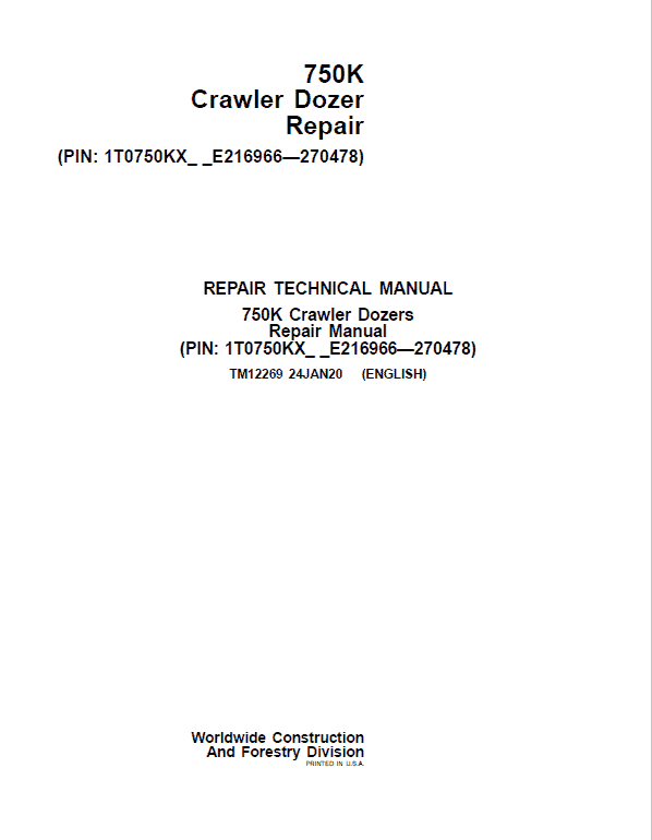 John Deere 750K Crawler Dozer Technical Manual (SN. from E216966 – E270478)