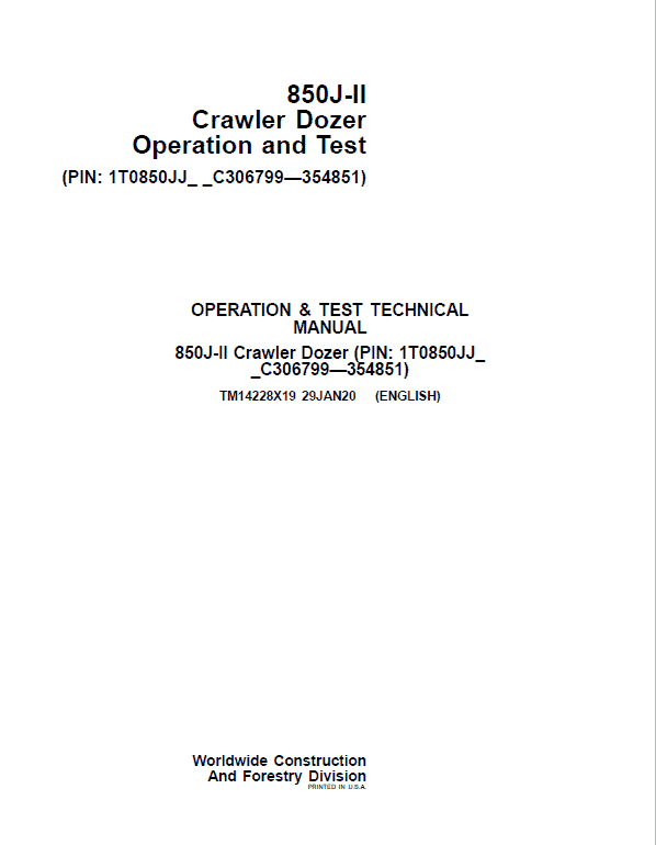 Crawler Dozer Model Applicable Serial no: 850J-II (PIN: 1T0850JJ_ _C306799—354851)