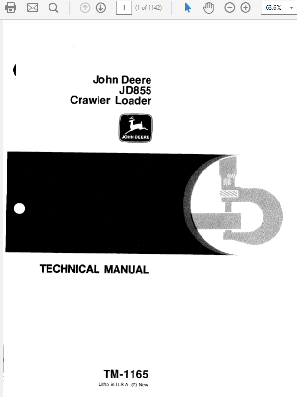 This Technical manual also known as Service Manual for John Deere 855 Crawler Loader includes repair and maintenance information, detailed description of service and troubleshoot procedures, installation instructions, special instructions, other additional information. This manual includes illustrations like pictures and diagrams which you can help you determine the installation location spare parts, etc.